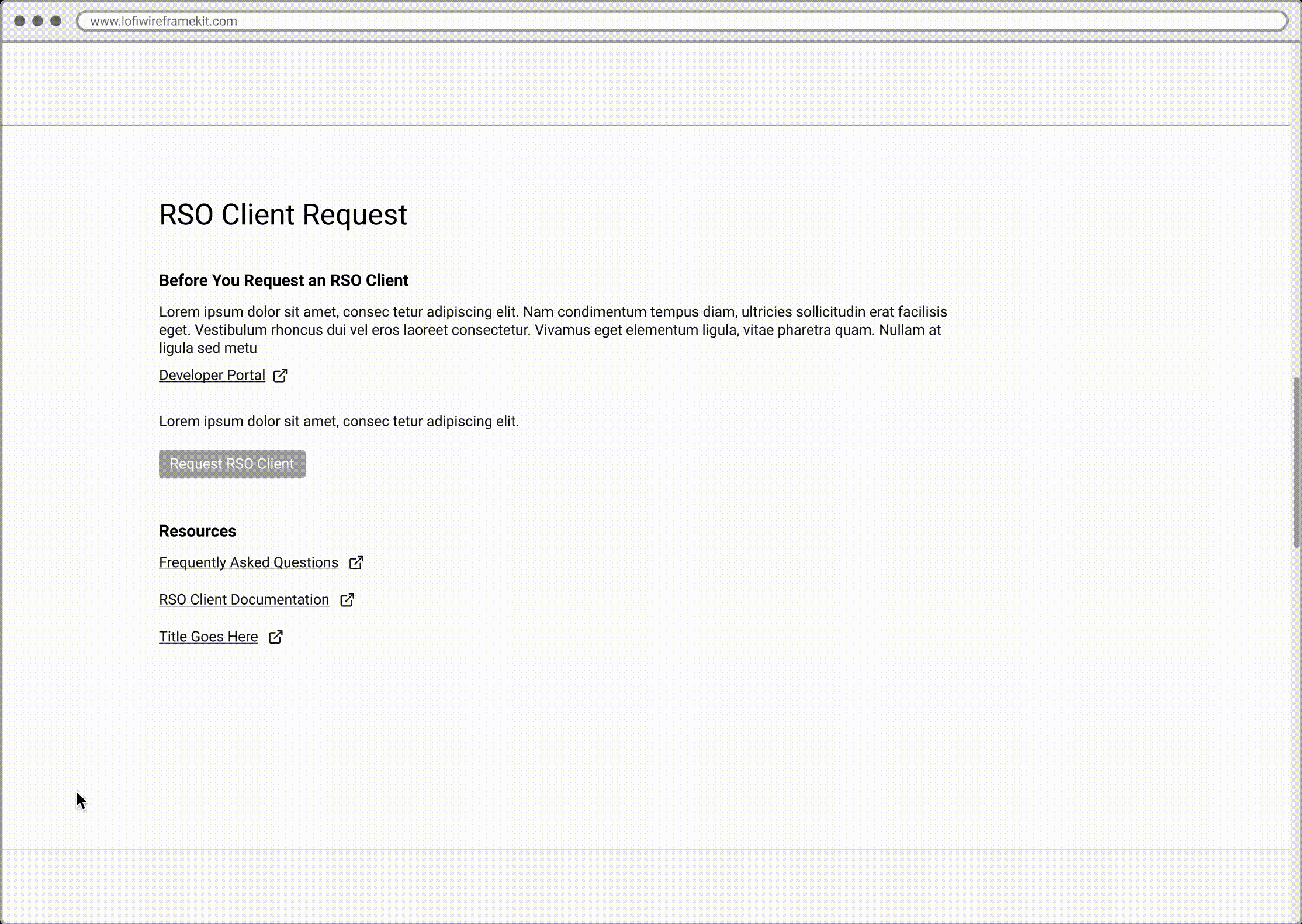Our goal was to reduce the long communication process faced by external developers and Riot Producers, as well as increase the integration of RSO. We wanted to provide external developers the opportunity to request an RSO Client, which will reduce the amount of back-and-forth communication with the team and the time it takes to get a Client integrated.