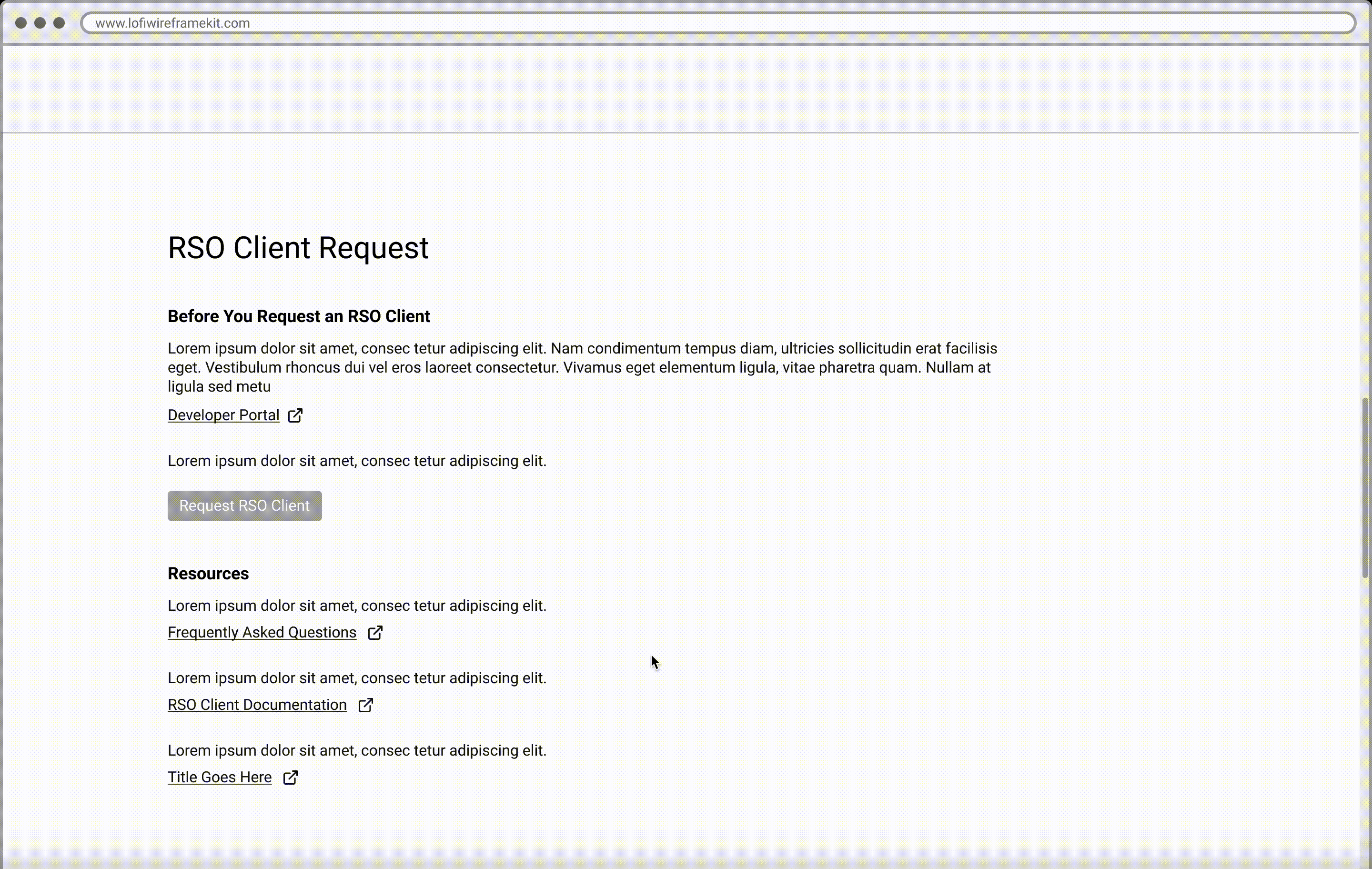Create a streamlined, self-service experience that allows external developers to independently request and manage RSO Clients in an external portal.